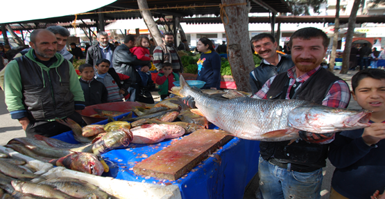 Bahçelievler semt pazarında büyük balıkları gören vatandaşlar meraklı gözlerle balıkların temizlenmesini bekledi.