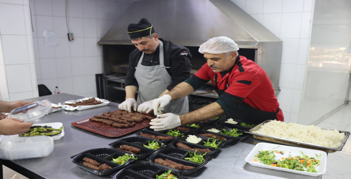 Büyükşehir Belediyesinin kendi tesislerinde özenle hazırlanan ve paketlenen kente özgü kebap ve sıcak yemekler binlerce ihtiyaç sahibi ailenin sofrasına doğru yola çıkıyor.