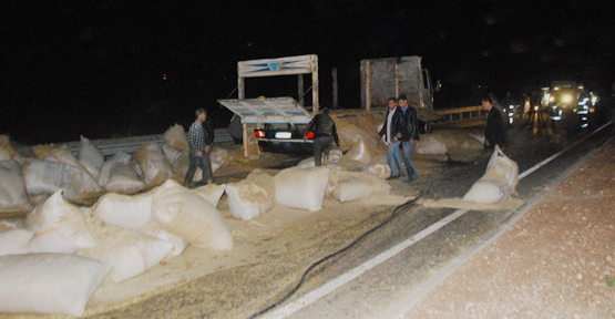 Şanlıurfa-Mardin karayolu Hipodrom yanında saman balyası yüklü seyir halindeki kamyon yandı. Edinilen bilgiye göre, Viranşehir’den yüklediği saman balyalarını Şanlıurfa’ya için yola çıkan Kadir B.’IN kullandığı 63 K 2176 plakalı kamyon, hipodrom bağlantı yolu yakınlarında henüz bilinmeyen bir nedenle alev aldı. Yangını fark ederek araçtan çıkan sürücü, itfaiye arayarak yardım istedi. Kısa süre sonra olay yerine gelen ekipler kamyondaki saman balyaların yola savurarak söndürmeye çalıştı. Yangın nedeniyle Mardin- Şanlıurfa istikametine geliş yönü trafiğe kapatıldı. Çıkan yangında kamyonun kasası ve saman balyaları büyük zarar gördü. Söndürülen saman balyaların ardından yol trafiğe açıldı.