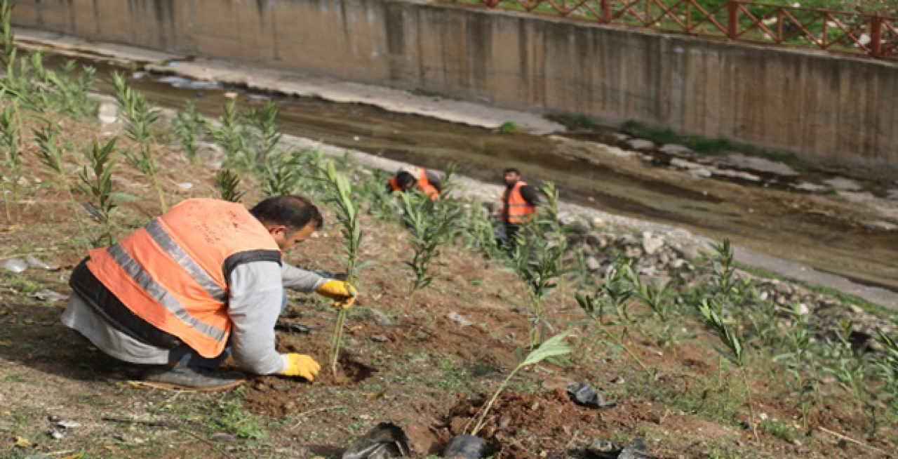 2 Milyon bitkiyi toprakla buluşturmayı hedefleyen Park ve Bahçeler Dairesi ekipleri, çalışmalar kapsamında Maşuk Bölgesinde Eyüp Cenap Gülpınar Caddesinin orta refüjleri, Akpınar Deresi kenarı ve Mardin Çevreyolundaki dere kenarlarını yeşillendirdi.