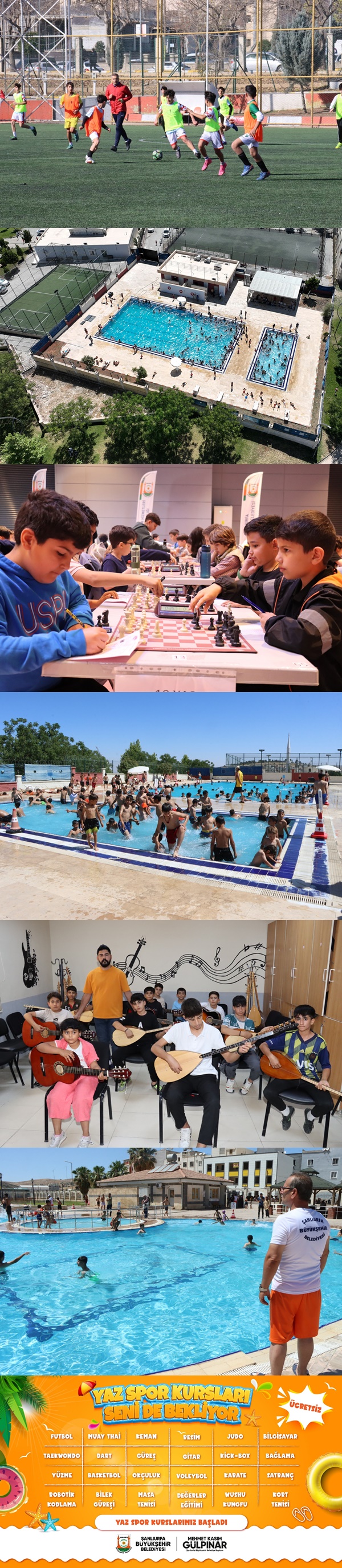 Şanlıurfa Büyükşehir Belediyesi; 18 gençlik merkezinde 30 farklı branşta kültürel ve sanatsal kurs, 17 spor salonunda ise 15 farklı branşta sportif kurs düzenliyor. Gençlik Merkezleri, Tenis Dünyası, Futbol Dünyası Tesisleri, açık ve kapalı yüzme havuzları, semt sahaları ve Bilim Merkezi gibi çeşitli tesislerde gençlere yaz boyunca hizmet veriliyor.