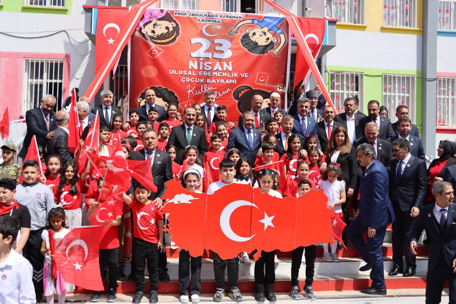 Şanlıurfa’da 23 Nisan Ulusal Egemenlik ve Çocuk Bayramı, minik öğrencilerin hazırladığı renkli etkinliklerle coşkuyla kutlandı.