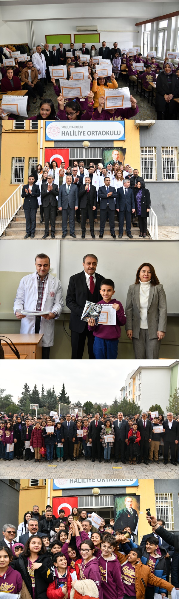 Haliliye Ortaokulu’nda düzenlenen karne törenine Vali Hasan Şıldak, okul yöneticileri, öğretmenler, öğrenciler ve veliler katıldı. Vali Şıldak ve beraberindekiler öğrencilere karnelerini dağıttı.