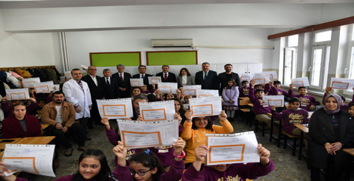 Öğrencilere iyi tatiller dileklerinde bulunan Vali Şıldak, hediyelerini de unutmadı.