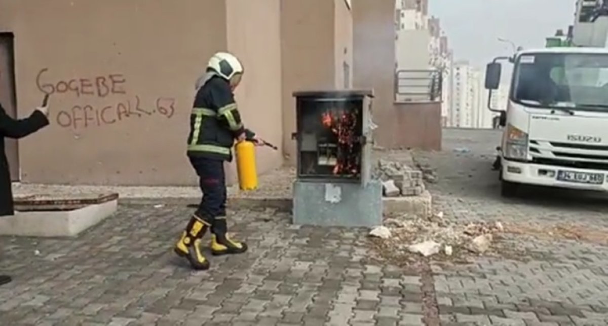 Edinilen bilgiye göre Şanlıurfa’nın Eyyübiye ilçesinde yol kenarında yer alan elektrik trafosu, bilinmeyen bir nedenden dolayı alev aldı. Elektrik panosundan çıkan dumanı gören mahalle sakinleri durumu itfaiyeye bildirdi. Kısa sürede olay yerine gelen Şanlıurfa Büyükşehir Belediyesine bağlı İtfaiye daire başkanlığına bağlı ekipler elektrik trafosunda çıkan yangına müdahale ederek söndürdü.