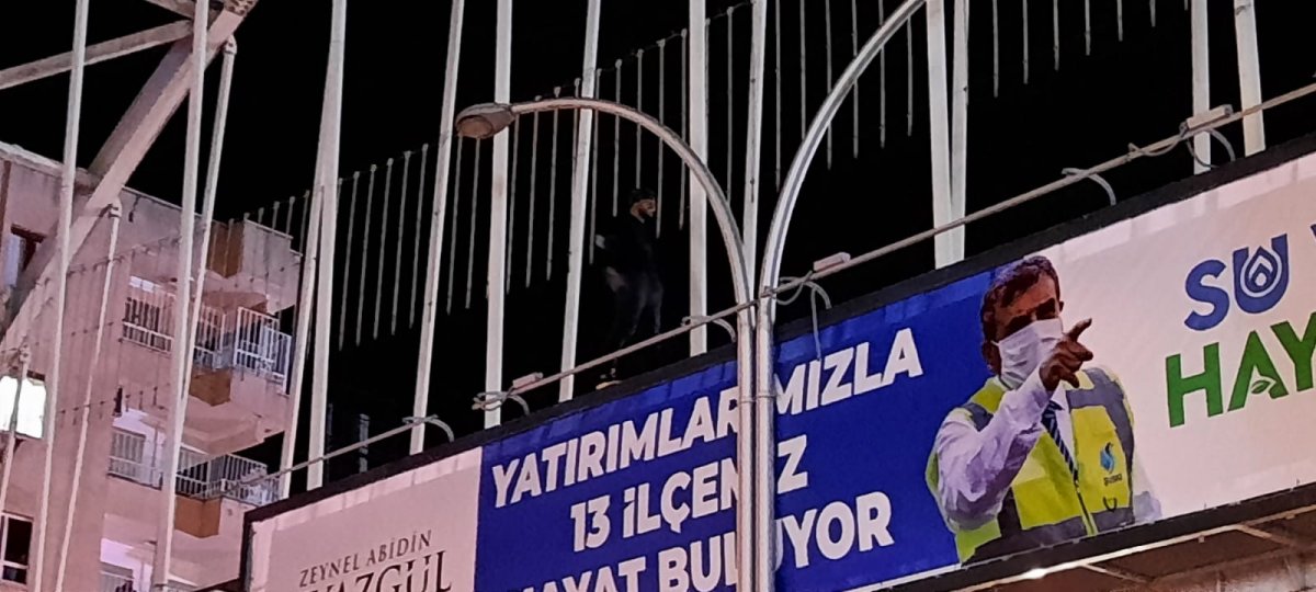 Polis, sağlık ve itfaiye ekipleri olay yerinde güvenlik önlemleri aldı. İtfaiye ekipleri tarafından atlama ihtimaline karşı aşağıda el çadırı açtı. Polisin 1 saat süren çabası sonucu intihar girişiminde bulunan kişi ikna edilerek indirildi.