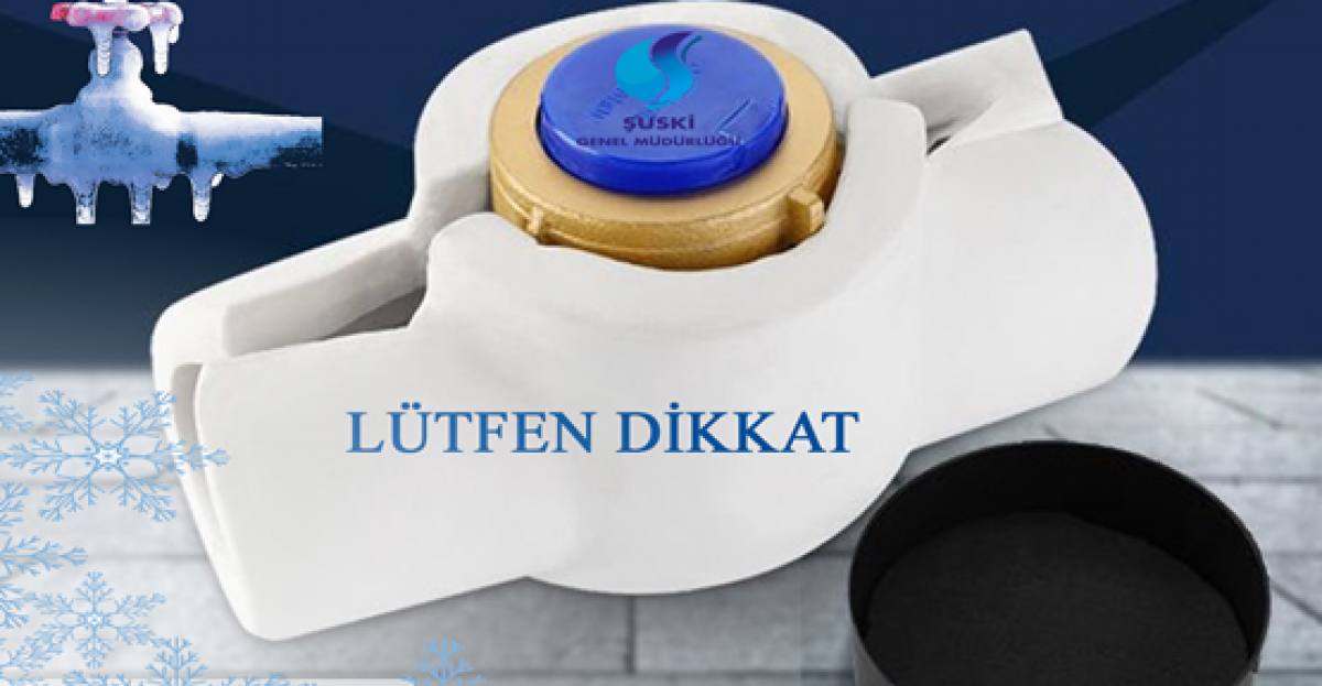 ŞUSKİ açıklamasında şu ifadeleri kullandı: 17.01.2022 tarihi itibariyle hava sıcaklıklarının aniden düşmesi ile birlikte su sayaçları ve tesisatlar da oluşabilecek donma riskini engellemek için içme suyu abone şebeke boruları ve su sayaçlarının izolasyonunun yapılması önemle rica olunur.’’ifadelerine yer verdi.