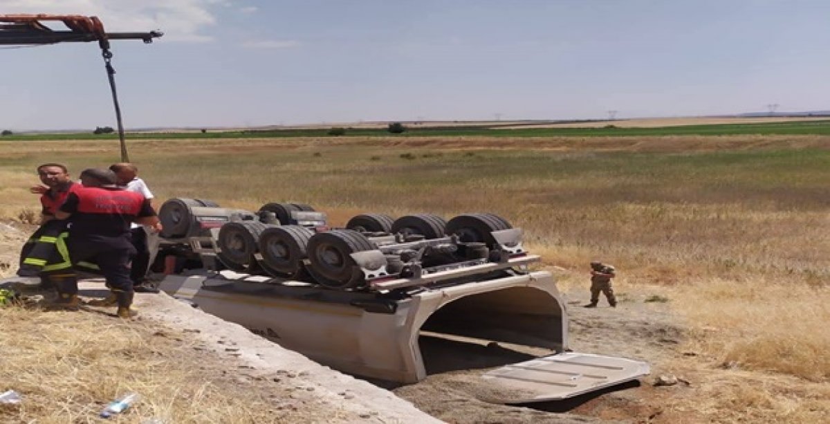 Şanlıurfa’nın Bozova ilçesinde kontrolden çıkan kum yüklü tır şarampole devrilerek takla attı. Kazada 2 kişi yaralandı.