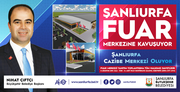 08 Ağustos 2017 Salı günü saat: 17.00'da Mehmet Akif İnan (Urfa City) Konferans Salonunda tanıtım programının yapılacağını belirten Başkan Nihat Çiftçi, Tüm Şanlıurfalıları tanıtım programına davet etti.