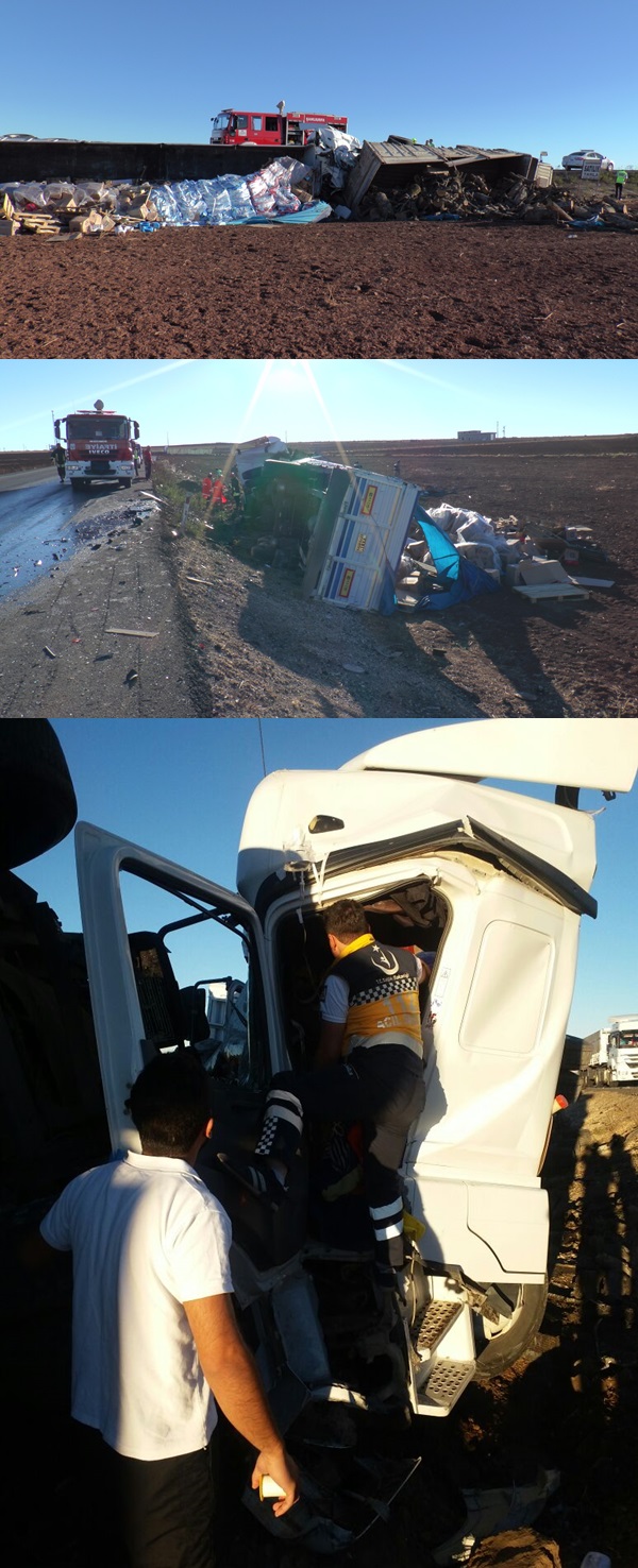 Kaza sabah saatlerinde Şanlıurfa- Gaziantep karayolunun 25. Kilometresinde meydana geldi. Alınan bilgilere göre tepe tesisler yakınlarında İbrahim Yıldı’nın kullandığı temizlik malzemesi yüklü 06 BR 6294 Tır ile aynı istikamette giden odun yüklü Mehmet Taş idaresindeki 63 NK 698 plakalı kamyon arkadan çarptı. Çarpışmanın etkisi ile iki araç şarampole yuvarlandı. temizlilik malzemeleri tarlaya savruldu. Çarpışmanın etkisi ile İbrahim Yıldı ve Mehmet Taş yaralandı. sürücülerin haber vermesi ile olay yerine sağlık ekibi ve itfaiye sevk edildi. Araçta sıkışan tır sürücüsü itfaiyenin uğraşları sonucu sıkıştığı araçtan çıkartıldı. Yarlılar olay yerinde yapılan ilk müdahalenin ardından Ambulanslarla Şanlıurfa'daki hastanelere kaldırıldı. Kazayla ilgili soruşturma başlatıldı.