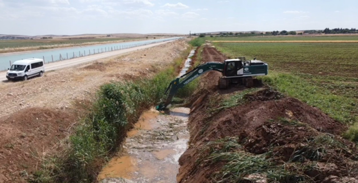 Atatürk Barajı'ndan alınan suyu Şanlıurfa'dan Mardin'e taşıyan, 221 kilometrelik Mardin-Ceylanpınar sulama kanalı kuşaklama kanalında temizlik çalışması başladı.