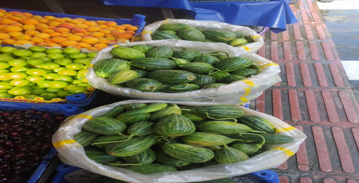 Şanlıurfa'nın Viranşehir ilçesinde yetiştirilen, gelişme evrelerinde önce salatalık, sonra karpuz ve son olarak da kavuna benzetilen tescilli şelengo meyvesi, tezgâhtaki yerini aldı.