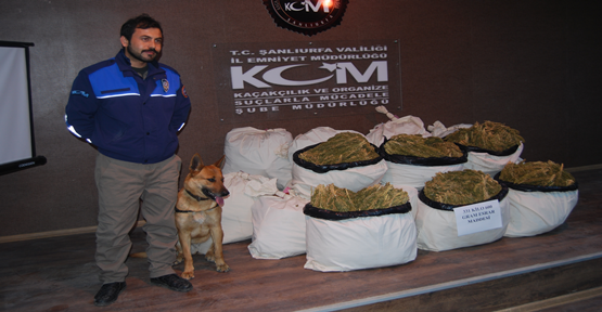 Şanlıurfa Emniyet müdürlüğü Kaçakçılık şube müdürülüğü(KOM)Şanlıurfa’da Mardin yönünden gelmekte olan bir Tır’da yüklü miktarda esrar sevkiyatı yapılacağı yönünde bilgi alan Şanlıurfa Emniyetine bağlı Kaçakçılık ve Organize Suçlarla Mücadele ekipleri Viranşehir İlçesi’nden itibaren Tır’ı yakın takibe aldı. Şanlıurfa-Mardin karayolu girişinde durdurulan Tır’da yapılan aramada Tır’ın boş olduğu görülmesinin üzerine polisler kokuya duyarlı Narkotik Köpeği Hera’yı devreye koydu. Tır içersinde Hera’nın tepki vermesi üzerine polisler, kasanın içersinde yapılan gizli bölmeyi açtı. Gizli bölmede yapılan aramada poşetler içersinde 300 kilo 600 gram esrar ele geçirildi. Polisin uygulama noktasına yaklaşırken birden Tır’ı durdurup kaçmaya başlayan sürücü 42 yaşındaki E.D., gözaltına alındı.. Emniyetteki işlemleri tamamlanan E.D., çıkarıldığı mahkeme tarafından tutuklandı.
