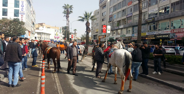 Şanlıurfa Büyükşehir Belediyesi, önünde at arabaları sahipleri, arabalarının zabıta ekipleri tarafından çekilmesi sonucu atlarını getirerek eylem yaptılar.