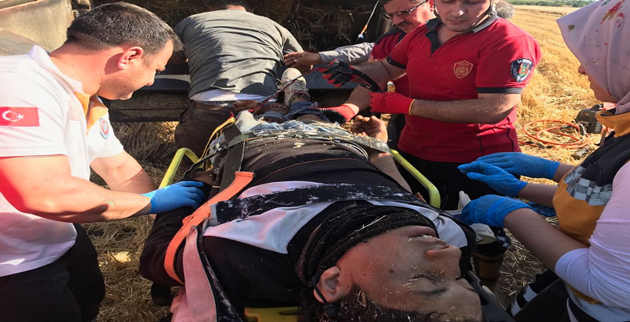 Şanlıurfa'da biçer döver makinesine düşen Suriye uyruklu kişi yaralandı.