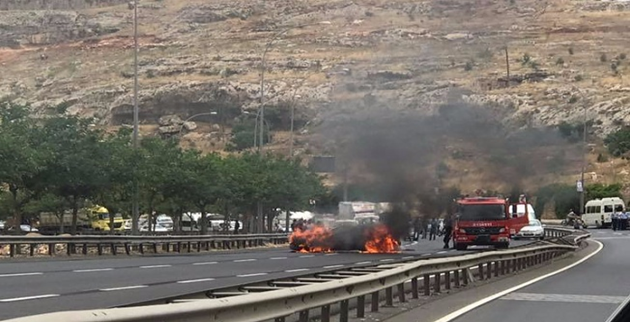 Şanlıurfa'da Akabe - Toki karayolu üzerinde bir araç alev aldı