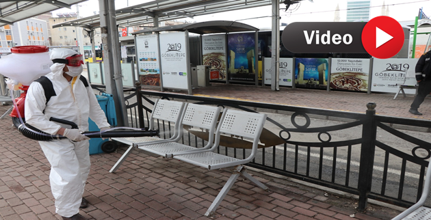 Şanlıurfa'da olarak Corona Virüse (COVID-19) karşı şehrin dört bir noktasında kamusal alanları ve toplu kullanım bölgelerini dezenfekte çalışmaları sürüyor.