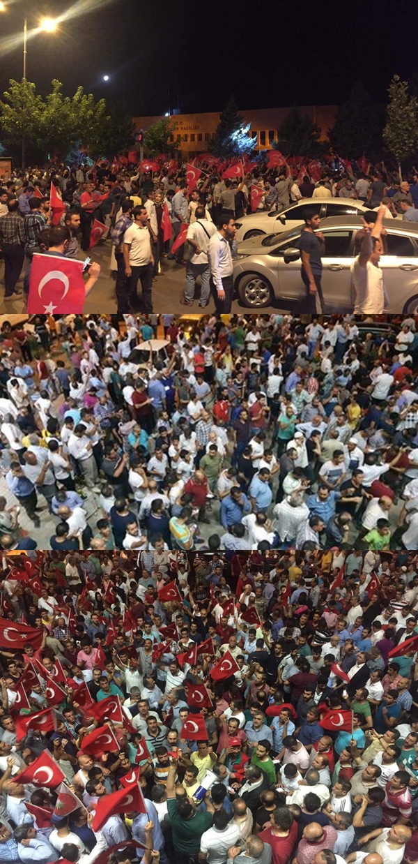 Binlerce kişi AK Partinin çağrısı üzerine emniyet ve AK Parti İl Binasının önünde toplanarak askeri kışlalara doğru yürüyüşe geçti. Öte yandan polis ise İl Jandarma Komutanlığı ile 20.Zırhlı Tugay Komutanlığı önüne zırhlı araçlar sevk etti. Emniyetin önünde toplanan kalabalık "Allah'u Ekber" sloganları atarak yürüyüşe geçti.