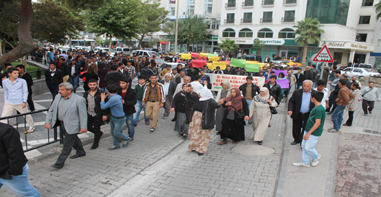 BDP İl Başkanı Celalettin Erkmen’in de aralarında bulunduğu grup, Şelli Parkı’nda Ahmet Bahçıvan İş Merkezine kadar yürüdü.