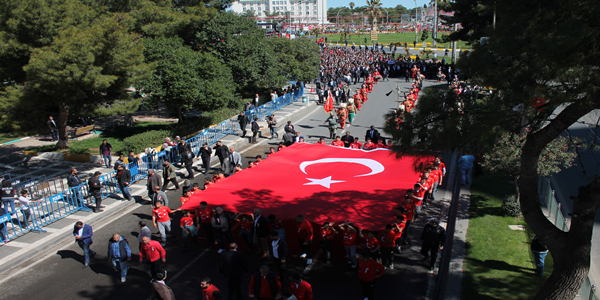 Yürüyüşe önden ve arkadan polis ekipleri eşlik etti. Dev bir Türk bayrağının açıldığı yürüyüşte mehter marşları çalındı. Coşkulu bir şekilde yapılan yürüyüşte, Polis haftası nedeniyle  “Şehitler ölmez vatan bölünmez”, “vatan sana canım feda” şeklinde sloganlar da atıldı.