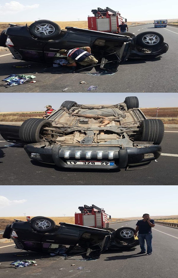Kaza saat ikindi saatlerinde, Diyarbakır Şanlıurfa karayolu Hilvan Kırbaşı mevkiinde meydana geldi. İddiaya göre  Ali Karakaş idaresindeki 42 BZE 41 plakalı aşırı hızlı seyir eden otomobilin  sürücünün direksiyon hakimiyetini kaybetmesi sonucu Takla atarak ters dönen otomobilde bulunan sürücü Vedat Baykan, Kübra Yaşar ve ismi öğrenilemeyen bir kişi yaralandı. Kazaya görenlerin haber vermesi üzerine olay yerine sağlık ekibi, itfaiye ve Jandarma sevk edildi.  Şanlıurfa Büyükşehir Belediyesi Hilvan İtfaiye ekipleri araçta sıkışanlar yarım saat yapılan uğraş sonucu otomobilden çıkardı. Sağlık görevlilerinin olay yerindeki müdahalesinin ardından yaralılar,Hilvan Devlet Hastanesi'ne kaldırılarak tedavi altına alındı. Kazayla ilgili soruşturma başlatıldı.