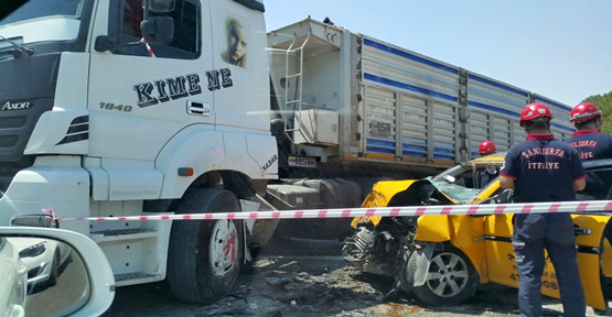 Şanlıurfa - Akçakale yolunda tır ile ticari taksi çarpıştı. Yaşanan kazada ticari taksi sürücüsü hayatını kaybetti, 1 kişide yaralandı.
