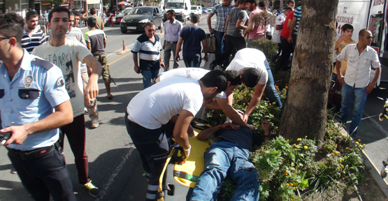 Şanlıurfa'nın Haliliye ilçesi Büyükşehir Belediyesi önünde motosiklet yayayı çarptı. kazada 2 kişi yaralandı.