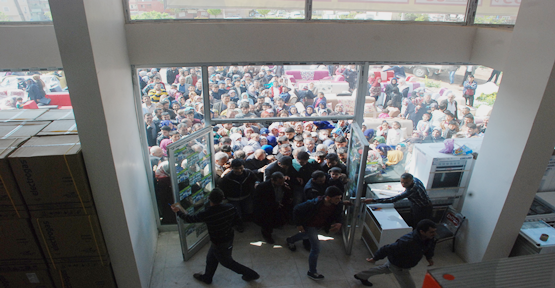 Mağaza kapılarını açar açmaz yüzlerce kişi birden kaplara yüklenince vatandaşlar ezilme tehlikesi geçirdi. Kapıların açılmasından kısa bir süre sonra kapıda yaşanan yoğunluk nedeniyle mağaza yetkililerinin kapıları açmasıyla birlikte vatandaşlar indirimleri ürünleri kapma yarışına girdi.