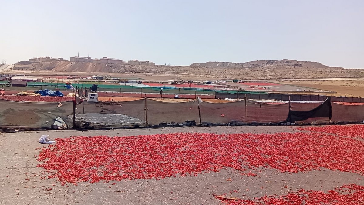 Şanlıurfa’nın Karaköprü ilçesine bağlı Dağyanı Mahallesi’nde, Germuş Köyü karşısındaki mesire alanı çevresinde yer alan Bilim Merkezi ve Zeytin Dalı Kampüsü yakınlarında kurulan yaklaşık 80 dönümlük alandaki kurutmalık tezgâhlarında, kadın işçiler sabahın erken saatlerinden akşama kadar çalışıyor. Burada biber, domates ve patlıcanlar özenle dilimlenip iplenerek güneşe seriliyor. Aynı zamanda isot ve pul biber üretimi de devam ediyor.