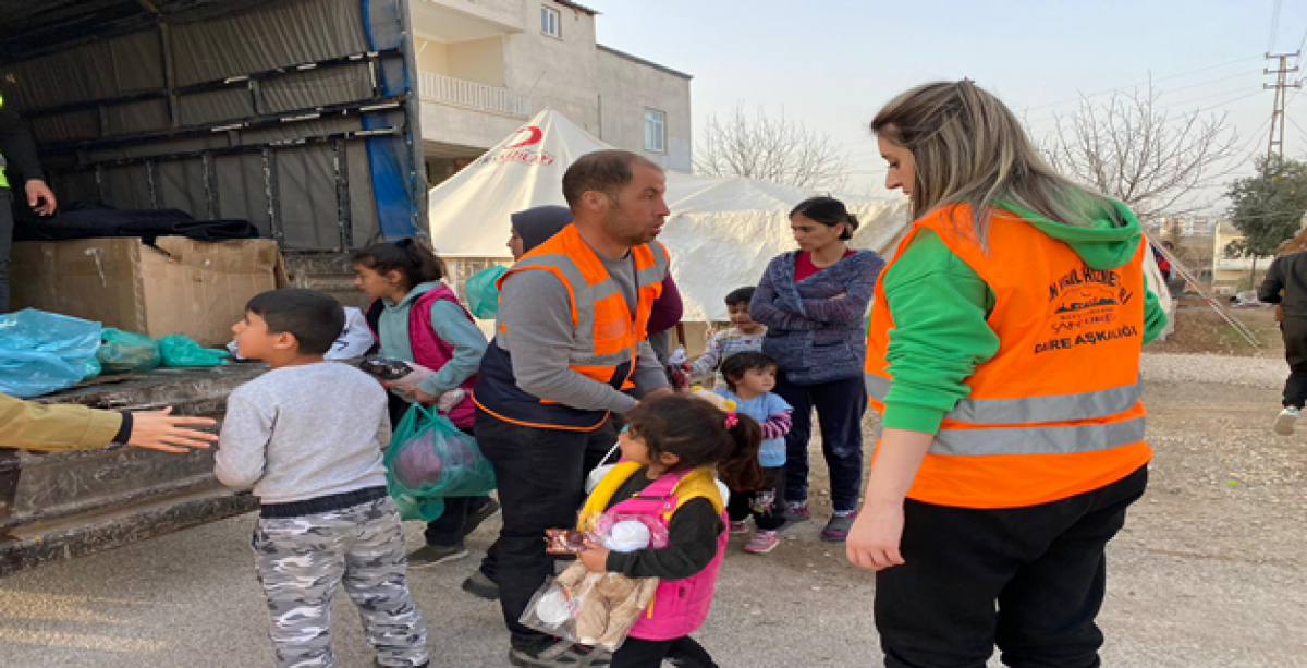 Halfeti Kadın Destek Merkezi kursiyerleri ve gönüllü kadınlar tarafından hazırlanan paketler Adıyaman’da AFAD ve çeşitli kuruluşlar tarafından kurulan çadır kent ve konteyner kentlerde konaklayan çocuklara ve vatandaşlara ulaştırıldı.