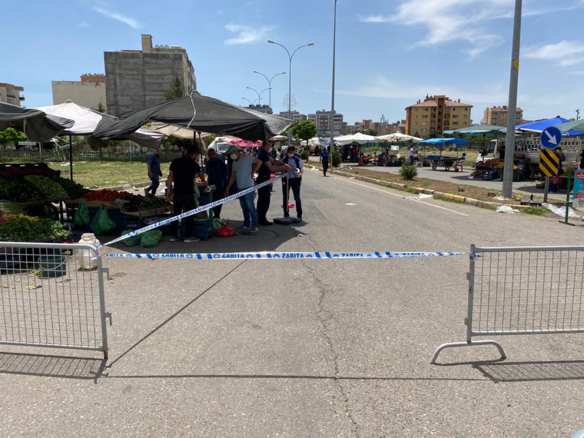 Pazarın giriş ve çıkış noktalarını bariyerle kapatıp tek giriş ve çıkış yeri bırakan ekipler, pazara girmek isteyenlere maske dağıtılıp, dezenfaktan ikram ederek alındı.