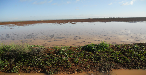 Şanlıurfa merkez ve ilçelerde etkili olan yağış bir çok tarlada gölet oluştu.