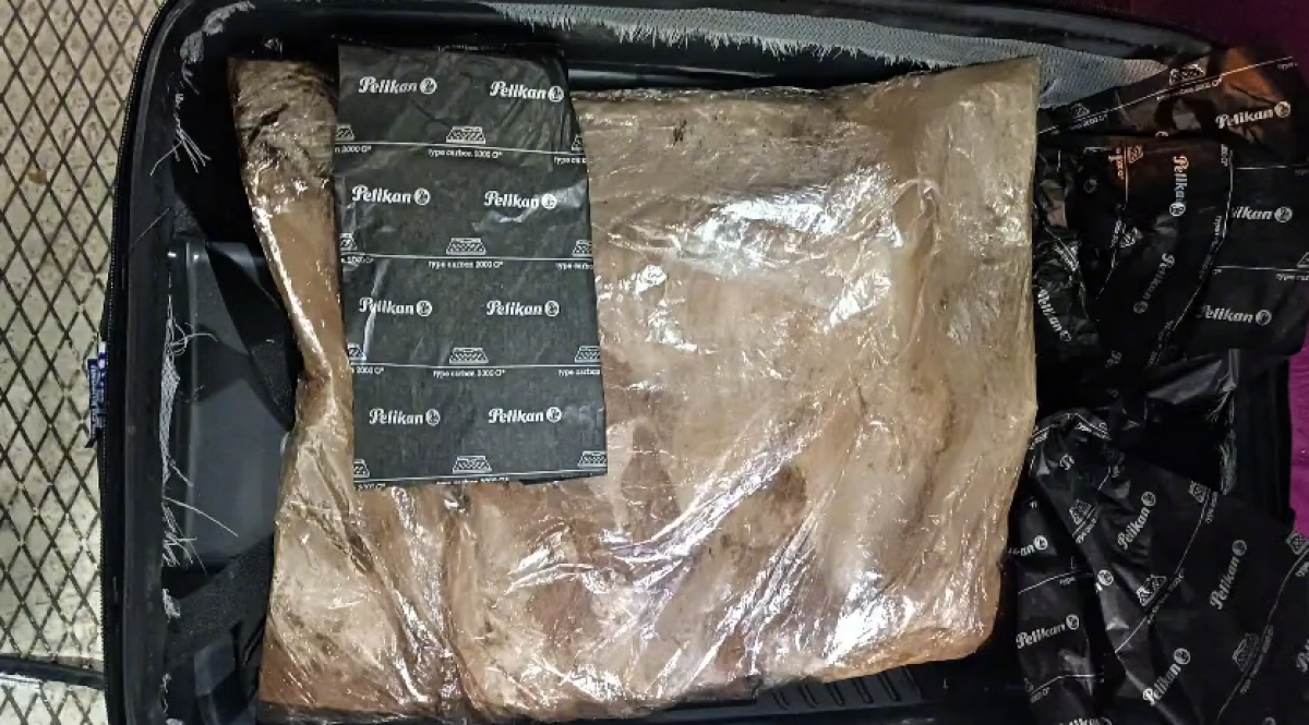 Şüphelinin üzerinde ve eşyalarında yapılan aramada bir valiz içerisinde 2 parça halinde toplam 2 kilo 400 gram eroin maddesi ele geçirildi.