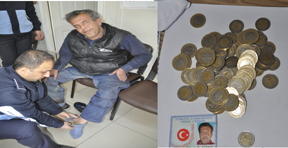 Zabıta karakolunda   yapılan üst aramasında,   şahsın  dilenerek  elde ettiği  paraları  sol ayağındaki çorapların  içine  sakladığı görüldü. Üç saat içinde   toplam 105 TL para  kazandığı  zabıtalarca  tespit edilen şahıs, kabahatler kanunu istinaden işlem yapıldı.