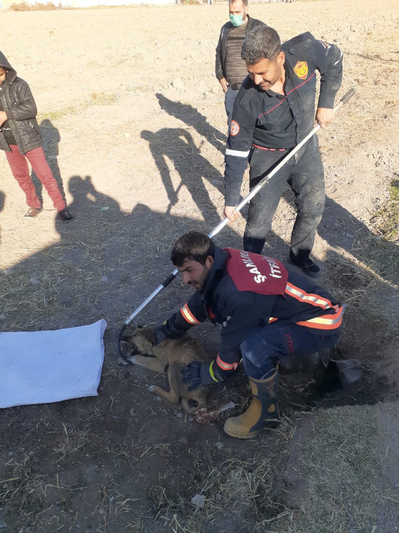 Şanlıurfa'nın Akçakale ilçesinde Mayın tarlası bitişik su borusunda sıkışan köpek itfaiye ekipleri tarafından kurtarıldı.