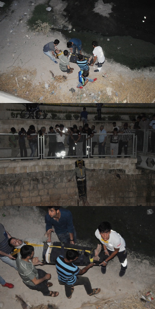 Şanlıurfa'da ailesine sinirlenen 30 Yaşındaki Suriye uyruklu Ali Askaş, kendini yaklaşık 20 metre yüksekliğinde bulunan Karakoyun deresine atladı.