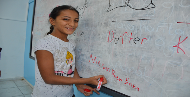 İç savaş nedeniyle Türkiye’ye sığınan Suriyelilerden 11 yaşındaki Meram Hidihi Türkçe öğrenim görüyor Meram Türkçe yazı yazmayı öğrenmiş Meram'ın hedefi öğretmen olmak ve özelikle Savaştan kaçarak Suriye'den gelen çocuklara öğretmenlik yapmaktır Küçük Meram kendilerine bu imkanı Sağlayan herkese teşekkür etti.