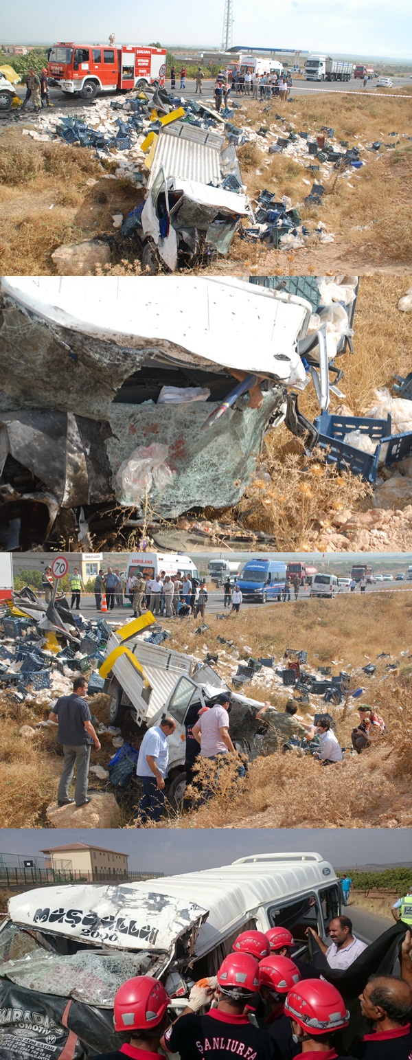 Kaza sabah saatlerinde Suruç- Birecik karayolunda meydana geldi alınan bilgilere göre Suriye ekmeği taşıyan Bilal Akkır'ın kullandığı 01 ALY 47 plakalı araçla köy postası olduğu bildirilen Hasan Kaya'nın idaresindeki 79 DS 619 plakalı aracın çarpışarak şarampole yuvarlandı. Kazada olay yerinde her iki aracın sürücüsü Bilal Akkır ve Hasan Kaya olay yerinde öldü. Olayın haber verilmesi ile olay yerine çok sayıda Ambulans, itfaiye, polis ve Jandarma intikal etti. Olayda can veren iki sürücü itfaiyenin yoğun çalışmasının  ardından  sıkıştıkları araçlardan çıkarıldı. Kazada yaralanan Derviş Dörtbudak Suruç devlet hastanesine kaldırıldı. İki sürücünün cansız bedenleri otopsi yapılamak üzere Şanlıurfa adli tıp kurumuna kaldırıldı. Kazayla ilgili soruşturma başlatıldı.