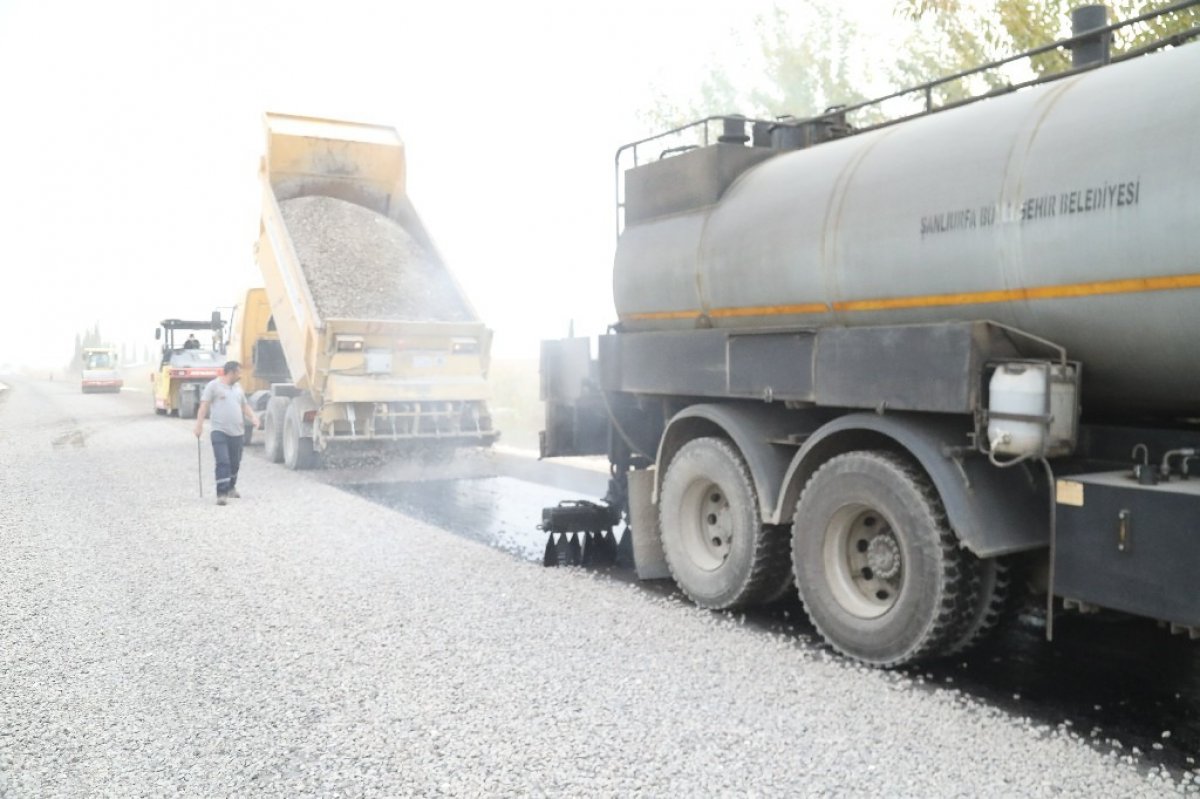Suruç’ta taban suyunun yükselmesi nedeniyle yolların altyapısına ağırlık veren ve ardından sathi kaplama asfalt serimine başlayan Şanlıurfa Büyükşehir Belediyesi Kırsal Hizmetler Dairesi Başkanlığı ekipleri vatandaşların konforlu bir ulaşıma kavuşmaları için mesaisini sürdürüyor.