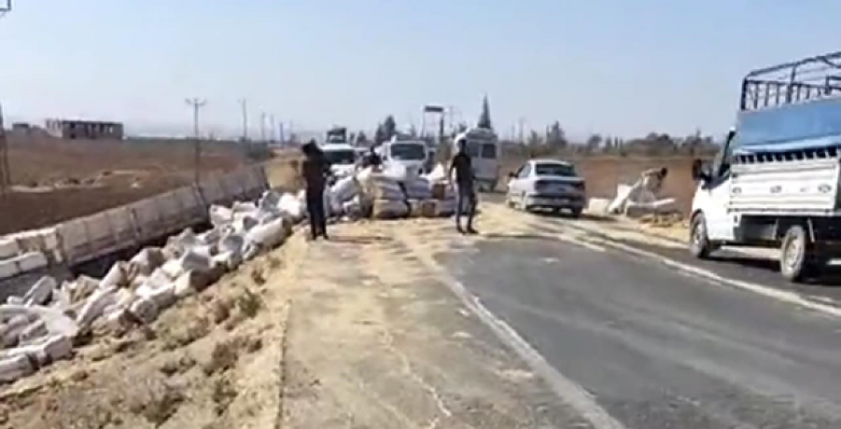 Şanlıurfa- Suruç karayolunda kontrolden çıkan saman yüklü tır tarlaya uçtu, Kazada sürücü yaralanırken yola saçılan saman balyaları yolu trafiği kapattı.