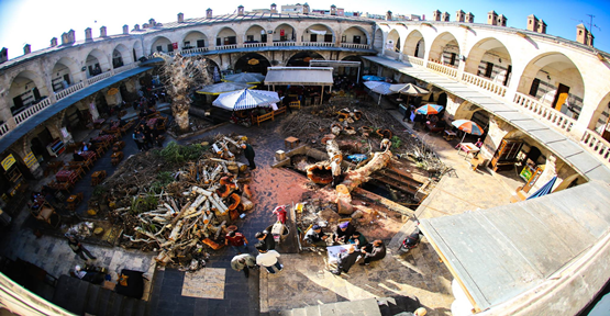Şanlıurfa'da tarihi Gümrük Hanı'nda bulunan 2'si tescilli 3 çınar ağacı, çürüdüğü gerekçesiyle Vakıflar Bölge Müdürlüğü'nün kararıyla kesildi.
