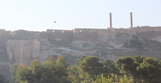 Şanlıurfa’nın simgesi olan bin 200 yıllık tarihi Urfa Kalesi’nde başlatılan restorasyon çalışmaları devam ederken, aradaki renk farklılığı da giderilmeye çalışılıyor.