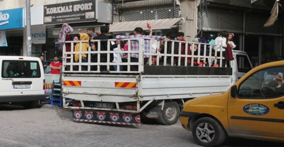 Şanlıurfa’nın Sarayönü Caddesinde bir ailenin kamyonet üstünde ki davullu zılgıtlı yolculuğu görenlerde şaşkınlık yarattı. Kamyonet üzerinde ki kişilerin bu tehlikeli yolculuğu endişeli gözlerle izlenirken, yolculuk yapanların rahatlığı göze çarptı. Çocuk ve kadınların olduğu aracın tehlikeye davet çıkarıyordu.