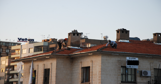 Şanlıurfa'nın Haliliye ilçesinde Topçu meydanından bulunan Bahçelievler sağlık ocağının çatı onarımı yapan işçilerin, metrelerce yükseklikte hiçbir güvenlik önlemi almadan çalıştıkları dikkati çekti. Sağlık ocağın çatısını tamirat yapan iki kişi Topçu meydanında banklarda oturan vatandaşların bakışlara aldırmadan işlerini yaptılar.
