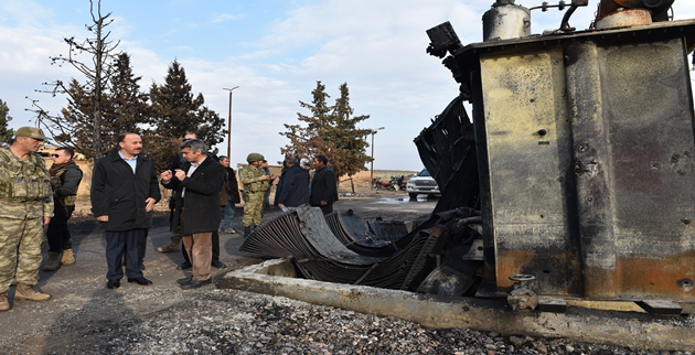 Türk Silahlı Kuvvetleri’nin Rus askeri yetkililerle yaptığı görüşmeler akabinde, Tişrin Barajı’ndan elektrik verilmeye başlanan kırsal kesimden sonra Telabyad ve Resulayn merkezine de enerji verilmesi için yapılan çalışmaları yerinde inceleyen Vali Abdullah Erin, terör örgütünün bölgeyi terk ederken trafo merkezlerini bombaladığını, iletim hatlarına zarar verdiğini belirtti.
