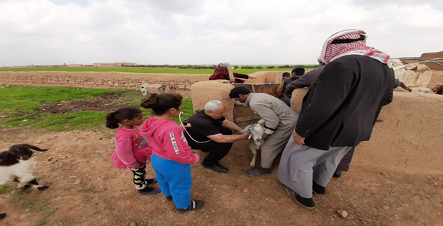 Önceki hafta süresince Telabyad’ın köylerini ziyaret eden Tarım ve Orman Müdürlüğü koordinatörlüğü personeli, M4 Karayolu sınırına yakın yerleşim birimleri olan Ebu Hüreyre köyü ve çevresindeki toplam yedi köyde hayvancılık faaliyetleri icra etti.