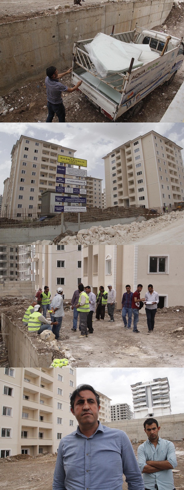 Taşeron firma sahiplerinden Süleyman Yazar,”TOKİ’nin Karaköprü ilçesinde basın çalışanları için yaptığı konutlarda aylardır üst yüklenici firma tarafından bütün hak edişlerini almasına rağmen aylardır yaptığımız işler karşılığında ödemelerini yapmıyor. Bu durumdan dolayı bütün taşeron firmalar mağdur durumda bulunuyorlar. Neredeyse tüm firmalar, monte ettikleri tüm çalışmaları sökecek noktaya geldi. Defalarca yüklenici firmaya ulaşmak istememize rağmen ulaşamadık. Gazeteci cemiyetlerimizden her hangi bir cevap alamadık. Şanılurfa Valimize, Çalışma ve Sosyal Güvenlik Bakanımız Faruk Çelik’e, TOKİ Başkanına seslenmek istiyorum: lütfen bu konuya el atsınlar, sıkıntılarımıza derman olsunlar. Konut sahipleri de bu noktadan mağdur olacak. Para ödenmediği noktada işler aksamaya devam edecek. Bu konuda duyarlılık gösterilmesini bekliyoruz. Yaklaşık olarak bütün taşeron firmaların yaklaşık 3 milyon liralık bir alacağı bulunuyor. Alacağımızı aldığımız taktirde konutlar tam anlamda 3 ay sonra teslim edilir" diye ifade etti.