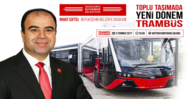 Şanlıurfa Büyükşehir Belediyesi tarafından 4 etap şeklinde projelendirilen trambüs tanıtımı Şanlıurfa Büyükşehir Belediye Başkanı Nihat Çiftçi'nin katılımıyla yapılacak.