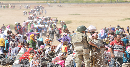 Şiddetli çatışmaların yaşandığı Suriye'de IŞİD saldırılarından kaçan Suriyeliler, Mürşitpınar Sınır kapısından Türkiye'ye giriş yapıyor.