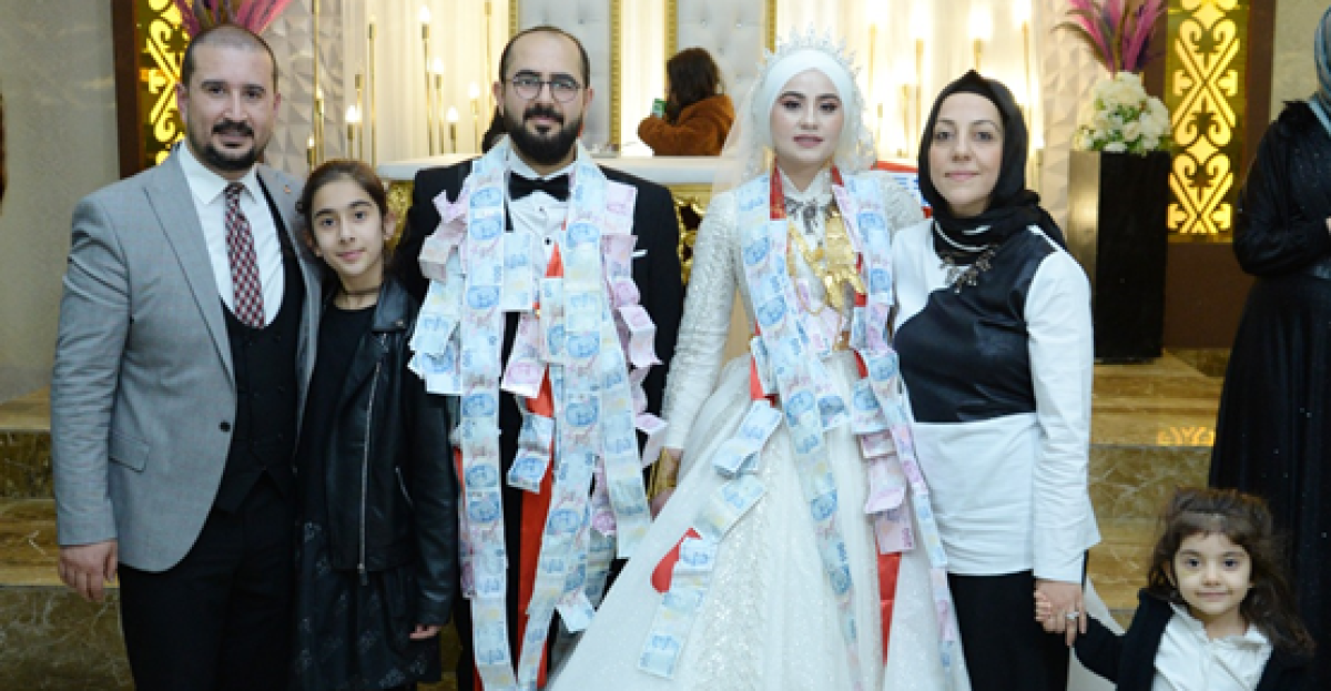 Düğün gelin ve damada takılan para ve altın ile sona erdi